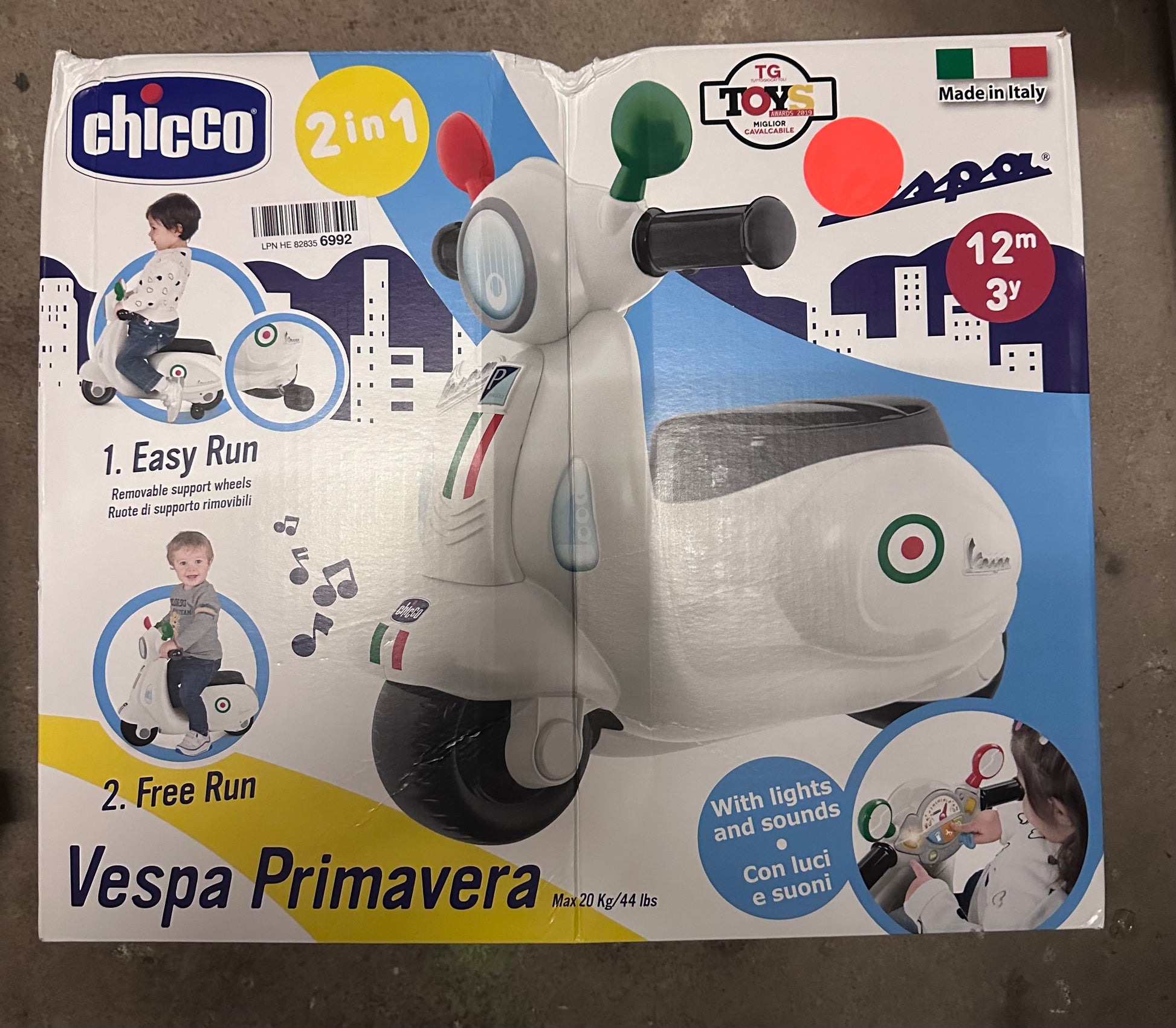 - PRIMAVERA VESPA: Der Chicco Rutscher mit unverwechselbarem Stil. Das originelle Design der Vespa Primavera lässt Kinder spannende Abenteuer und lustige Momente in völliger Freiheit erleben